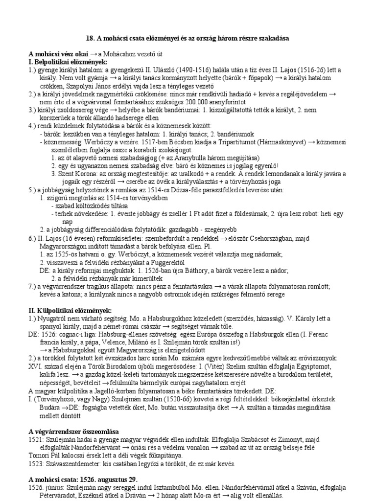 18 A Mohacsi Csata Elozmenyei Es Az Orszag Harom Reszre Szakadasa